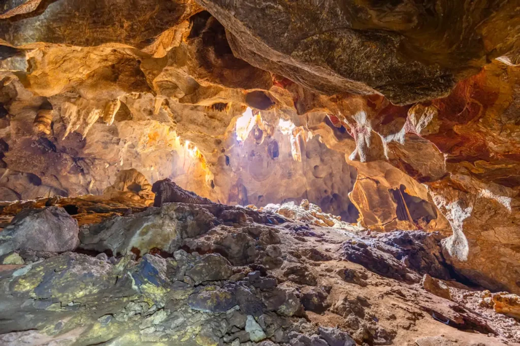 ถ้ำผาไท ภายในถ้ำเป็นโถงขนาดใหญ่เกิดจากภูเขาหินปูนอายุไม่น้อยกว่าเก้าล้านปี ความลึกจากปากถ้ำเข้าไปประมาณ 1,150 เมตร ตลอดเส้นทางอุทยานฯ ได้ติดตั้งไฟฟ้าเพื่อให้สะดวกในการเดินชมหินงอกหินย้อยที่มีอยู่มากมายในถ้ำ นอกจากนี้ภายในถ้ำยังปรากฏมีเถ้าภูเขาไฟอายุ 15 ล้านปี แน่นอนว่านี่คือ “หนึ่งเดียวในสยาม” ที่ถ้ำผาไทแห่งนี้ พระบาทสมเด็จพระเจ้าอยู่หัวรัชกาลที่ 7 เคยเสด็จประพาสเมื่อ พ.ศ. 2469 ดังปรากฏหลักฐาน พระปรมาภิไธยย่อ ปปร. ภายในถ้ำ นอกจากนี้ยังมีค้างคาวจำนวนมากอาศัยอยู่ในถ้ำแห่งนี้ และในบริเวณใกล้เคียงมีถ้ำโจรและถ้ำเสือที่มีประวัติเก่าแก่ สามารถเดินถึงได้จากถ้ำผาไท |