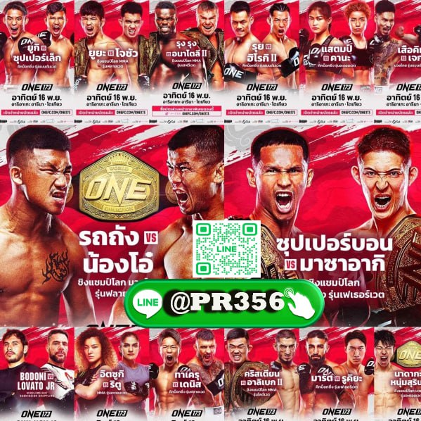 มวย ONE 173 คืออีกหนึ่งศึกที่แฟนมวยห้ามพลาด ทั้งความมันส์ในสังเวียนและโอกาสสร้างกำไรจากการแทงมวยออนไลน์ที่ @PR356 เว็บตรง ไม่ผ่านเอเย่นต์