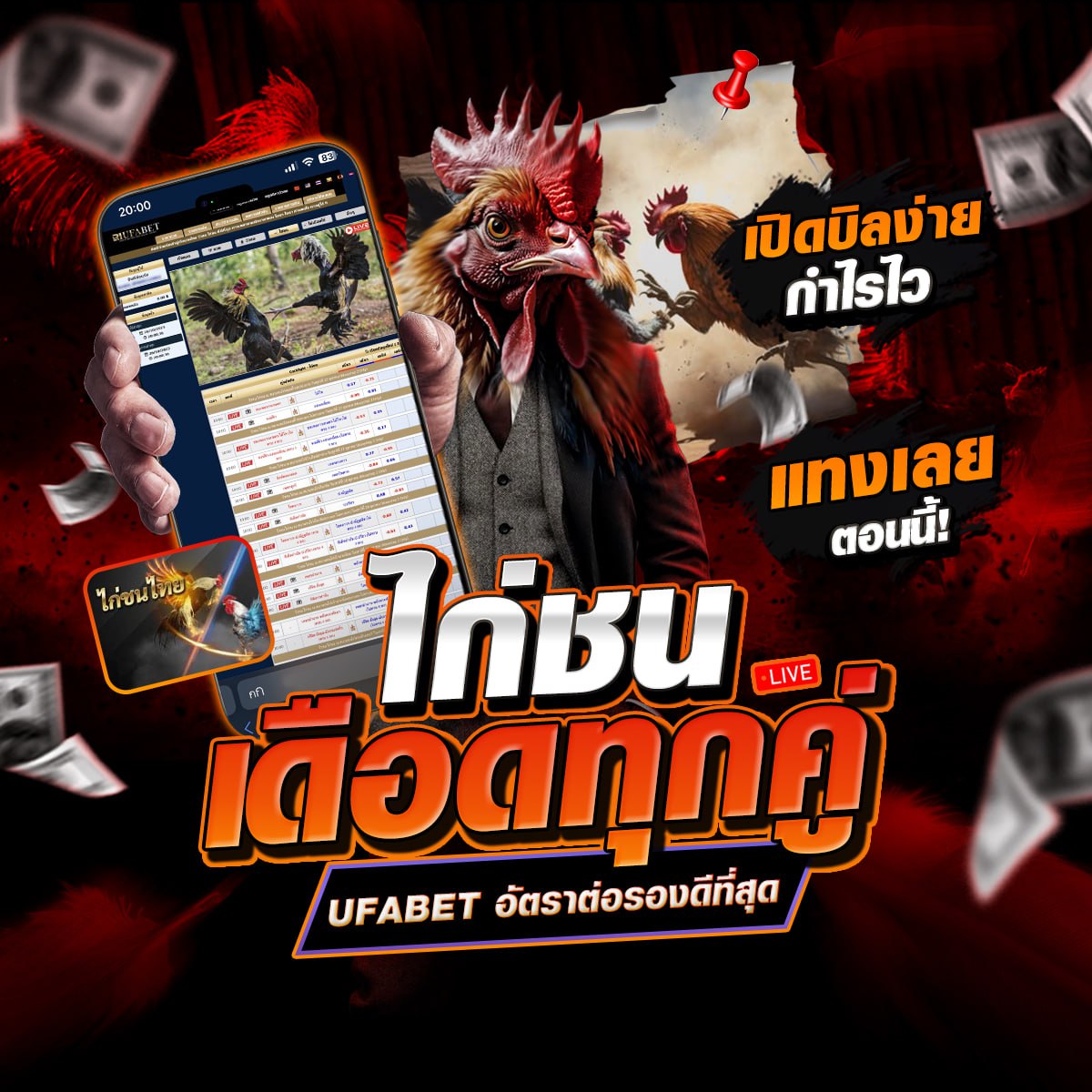 – เว็บ UFABET มี ไก่ชนออนไลน์ ถ่ายทอดสด การแข่งจากสนามจริง โดยผู้เล่นสามารถรับชมการแข่งขันแบบ Real-time พร้อมการเดิมพันในระหว่างการแข่งขัน