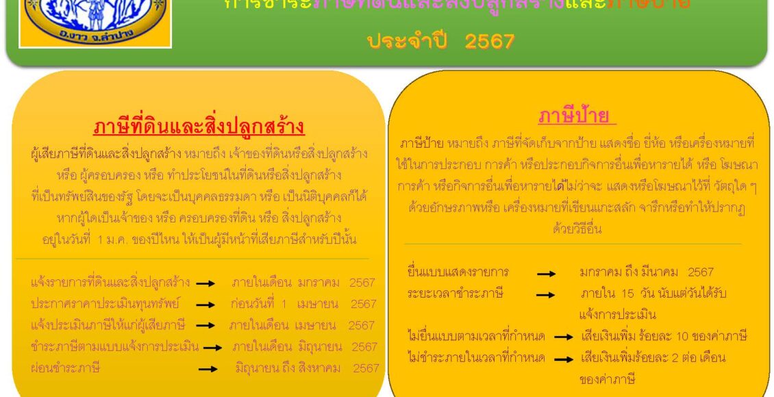 การชำระภาษีที่ดินและสิ่งปลูกสร้างและภาษีป้าย ประจำปี 2567 Loading... Taking too long? Reload document | Open in new tab Download Share FacebookTwitterEmail