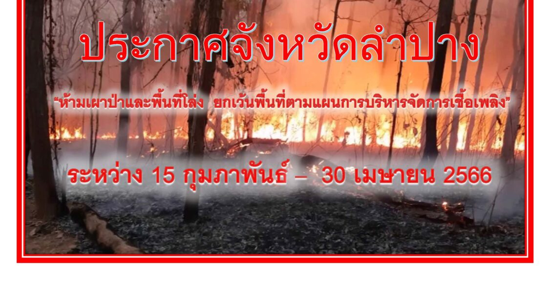 ประกาศจังหวัดลำปาง ห้ามเผาฯ ระหว่างวันที่ 15 ก.พ. – 30 เม.ย. 2566