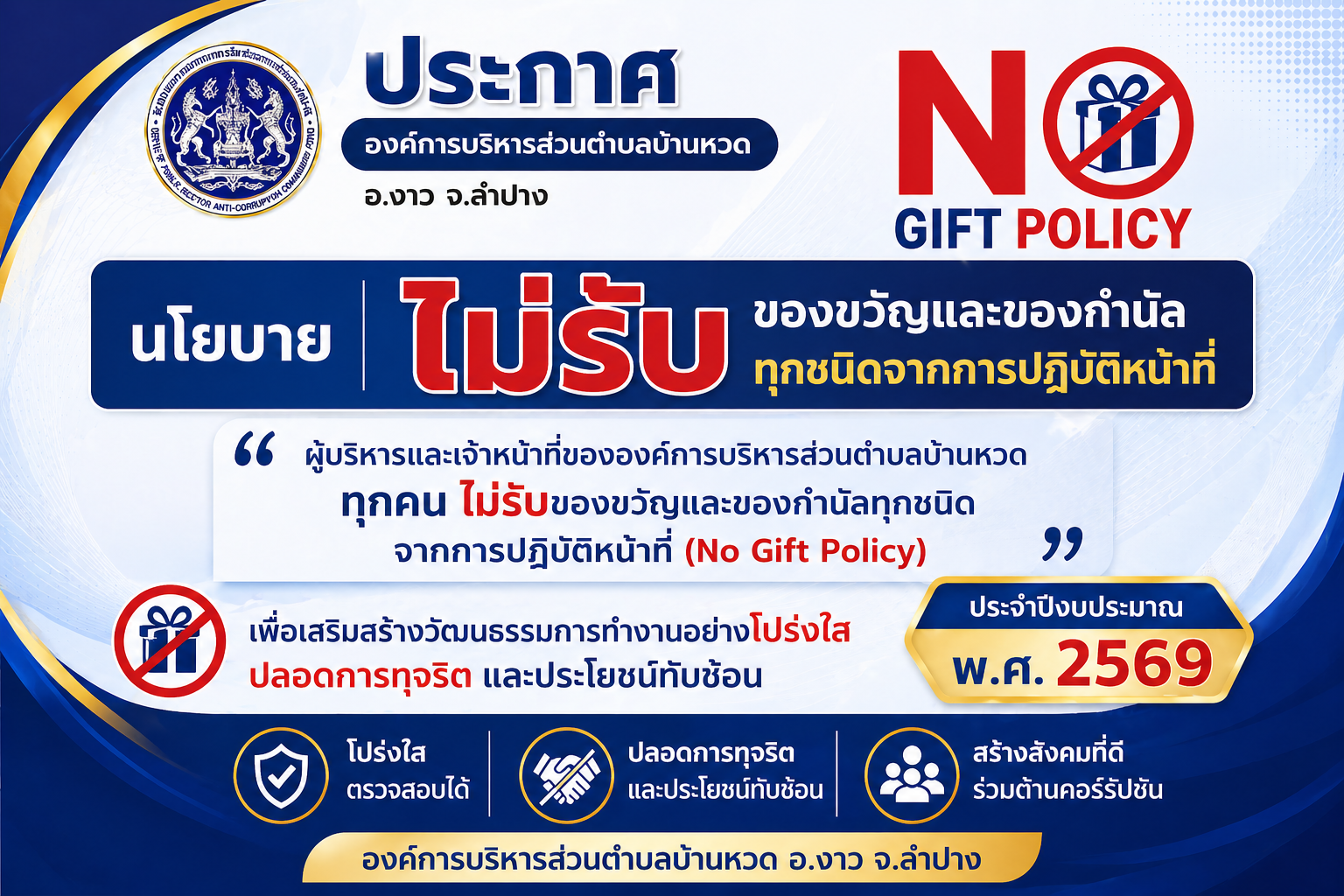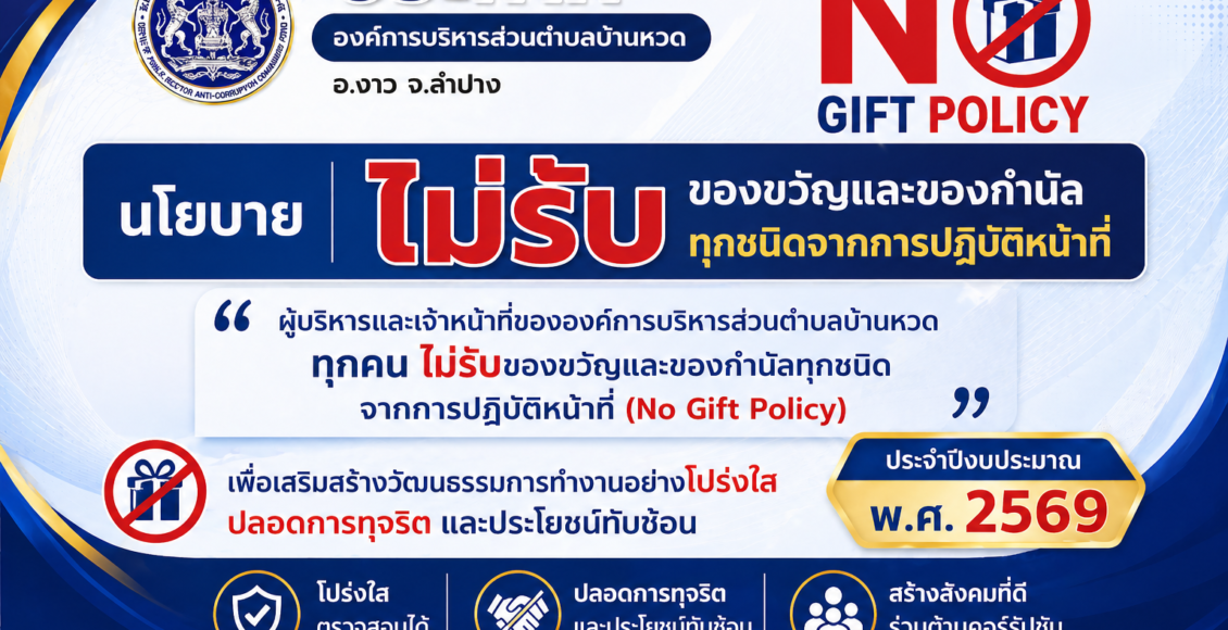 ประกาศ นโยบายไม่รับของขวัญและของกำนัลทุกชนิดจากการปฏิบัติหน้าที่ (No Gift Policy) ประจำปีงบประมาณ พ.ศ. 2569 Loading... Taking too long? Reload document | Open in new tab Download Share FacebookTwitterEmail